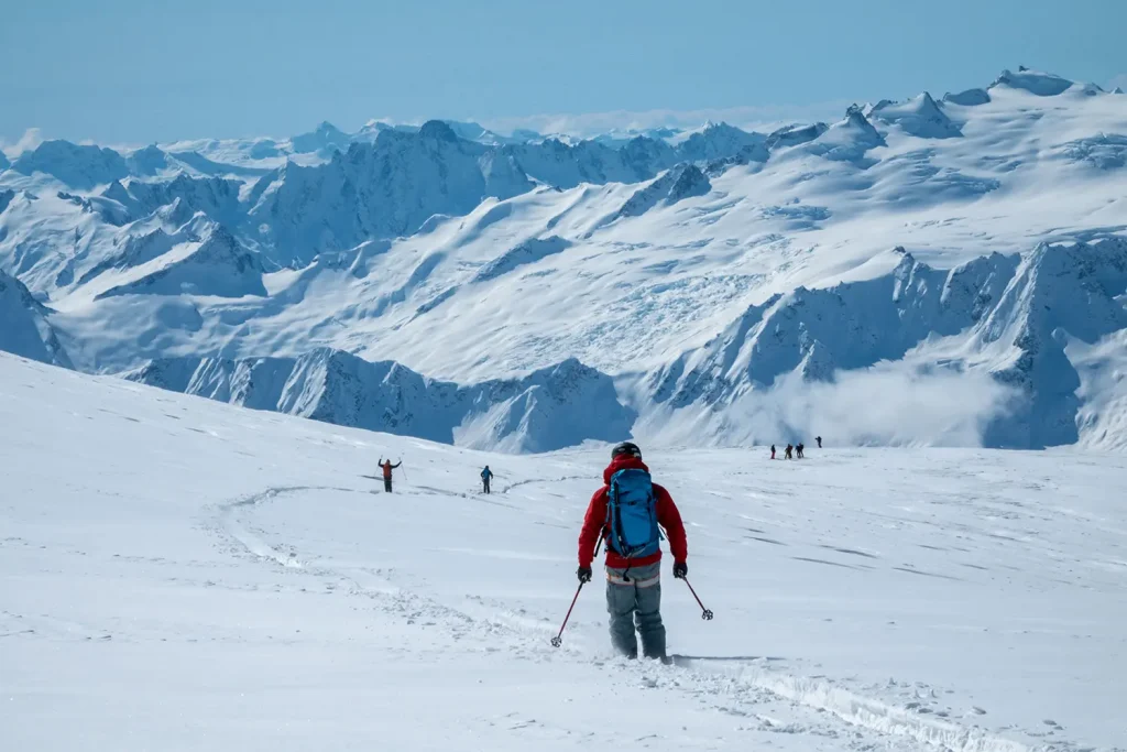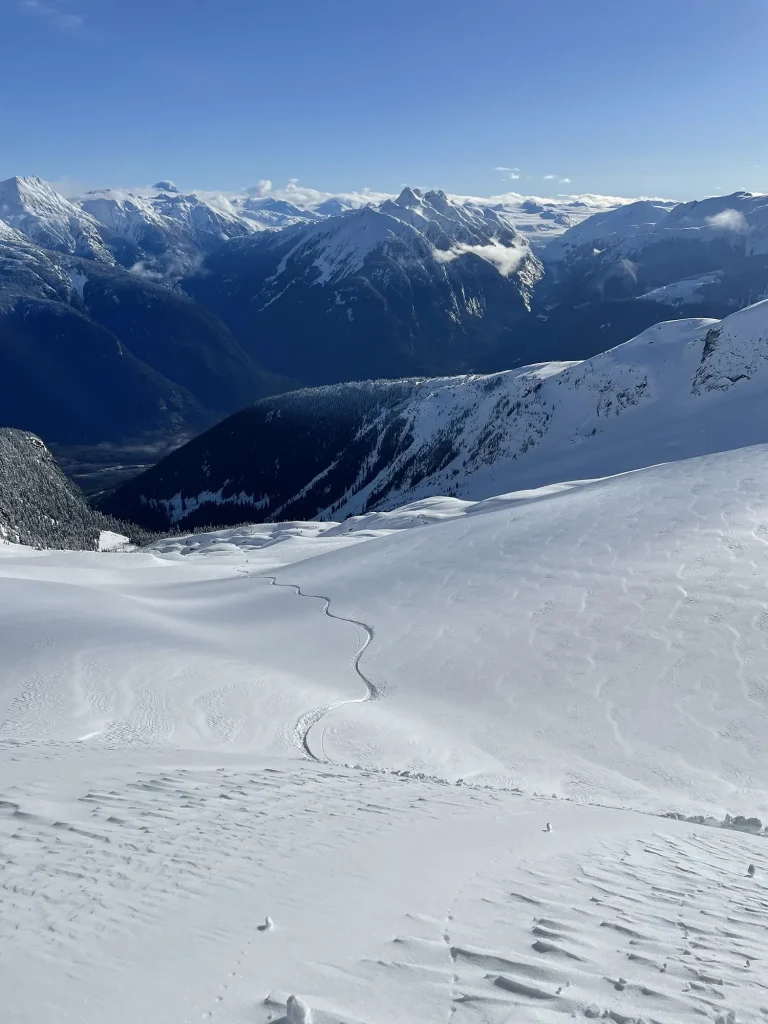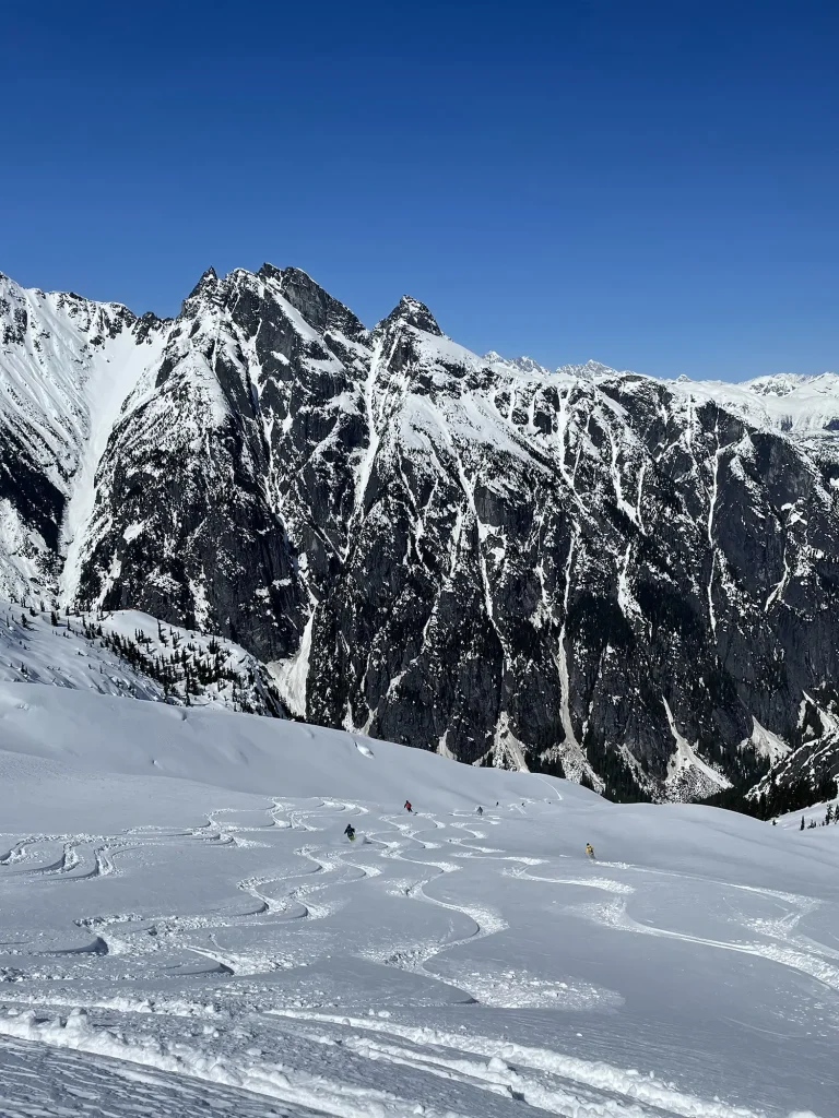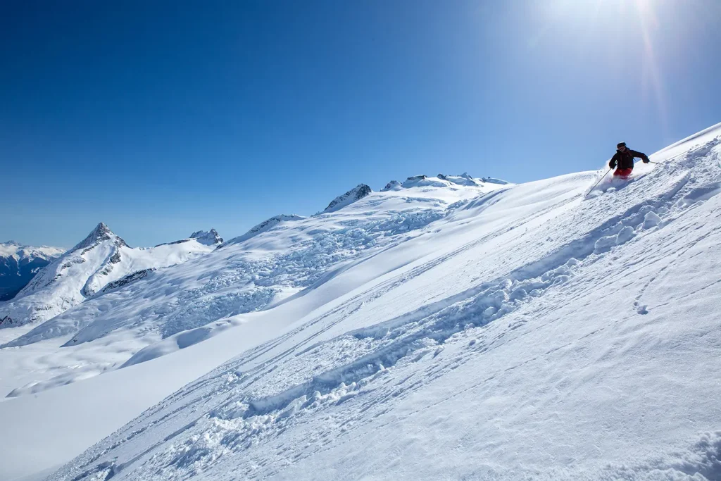 VIEWS, VIEWS and VIEWS. Home to Mount Grenville, Gunsight Peak and Mount Bute, separated from the Sir Francis Zone by the South Gate River and Mount Waddington by the Great Canyon of the Homathko River, this zone includes a large swath of the Homathko Ice Field. The enormity of the terrain here is hard to overstate, making for a breathtaking vista. The runs here are fewer in number and are accessible to intermediate skiers, however, as the zone is almost entirely in the alpine, a visit here requires good weather and clear skies.